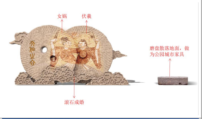 人祖華胥氏誕生出伏羲與女?huà)z兄妹,兩人想結(jié)婚生育后代,但又不好意思,便請(qǐng)求上天來(lái)決定:“如果天讓我們兄妹二人結(jié)為夫妻,天邊的云煙就聚合;如果不讓?zhuān)褪乖茻熒㈤_(kāi)。”剛說(shuō)完,只見(jiàn)云煙全都聚合。于是人類(lèi)文化史上首先便出現(xiàn)了婚姻,兄妹結(jié)成夫妻,就是輩分婚,繁衍出整個(gè)中華人類(lèi),傳說(shuō)為“摶土造人”,《易經(jīng)》記載為“雷澤歸妹卦”。民間還有個(gè)傳說(shuō),兄妹二人站在首陽(yáng)山上,哥哥推陽(yáng)磨扇象天,妹妹推陰磨扇如地,向山下滾去,口里念念有詞:“兩扇磨盤(pán)要是合在一起,而且天在上、地在下,咱倆就結(jié)婚。”沒(méi)想到,這兩扇磨盤(pán)滾著滾著就合在了一起,而且天上地下,便應(yīng)了“天作地合”。結(jié)婚時(shí),女?huà)z仍然害羞,便用草編扇子,扇住臉面。后世婚姻,女子仍使扇子遮羞,用紅綢蓋頭。