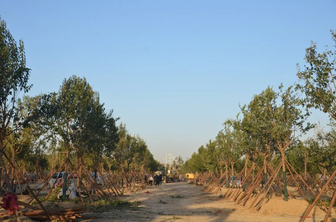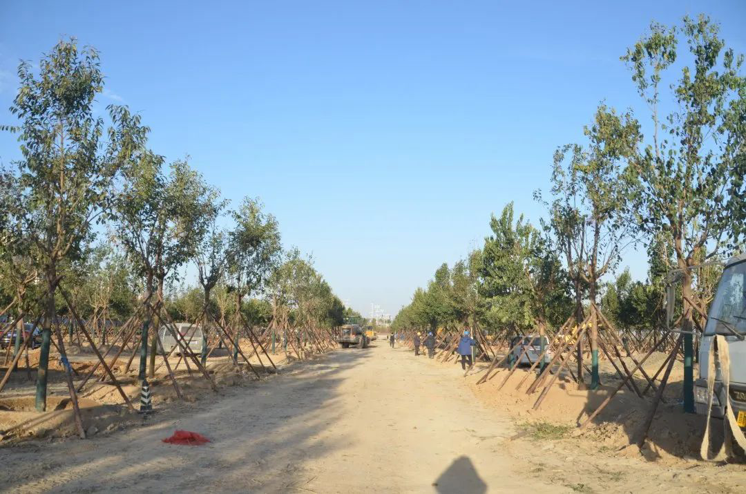 施工現(xiàn)場(chǎng),大型機(jī)械集中作業(yè),挖掘機(jī)、裝載機(jī)、吊裝機(jī)和運(yùn)輸車來(lái)回穿梭,九十余名工人辛勤勞作,相互配合,干勁十足,按設(shè)計(jì)規(guī)定放線挖坑、吊裝樹木、培土壓實(shí),防護(hù)林建設(shè)有序進(jìn)行。栽植過(guò)程中,多次討論研究,結(jié)合鹽池生態(tài)環(huán)境,統(tǒng)籌考慮,因地制宜選擇當(dāng)?shù)卦灾矘浞N,目前已種植國(guó)槐、榆樹、大葉女貞、紅葉石楠、大葉黃楊、金森女貞、麥冬等各類喬灌木草種共計(jì)700余株,綠化種植面積2萬(wàn)多平米,綠化建設(shè)將進(jìn)一步對(duì)鹽湖北側(cè)岸帶生態(tài)系統(tǒng)起到很好的防護(hù)作用。