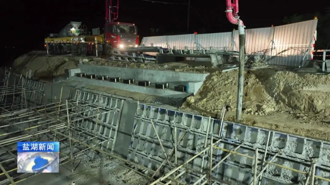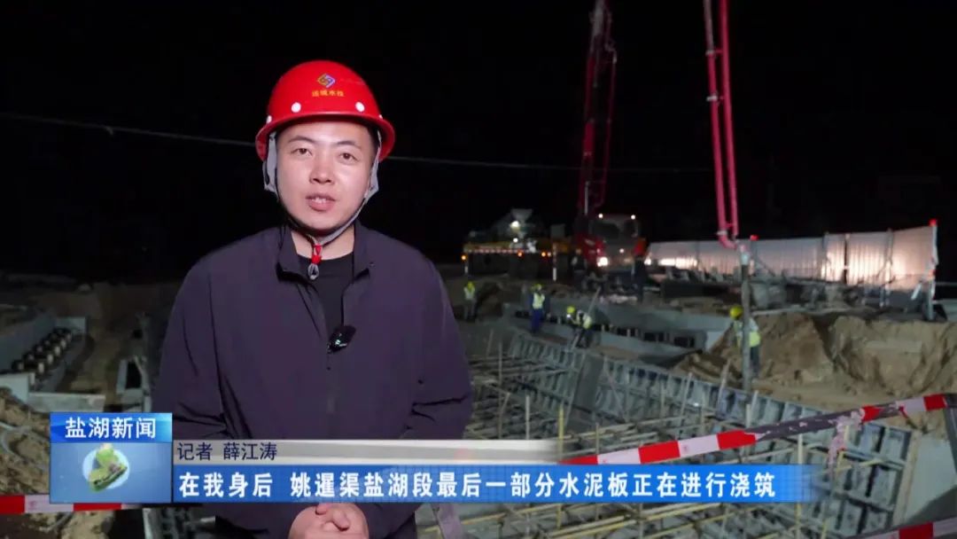 現(xiàn)在是4月28日晚上11時30分,在我身后,姚暹渠鹽湖段最后一部分水泥板正在進行澆筑。澆筑完成后,全長24.9公里的姚暹渠鹽湖段主體渠道將實現(xiàn)合龍,形成完整的過水通道,標(biāo)志著工程迎來關(guān)鍵的階段性勝利。